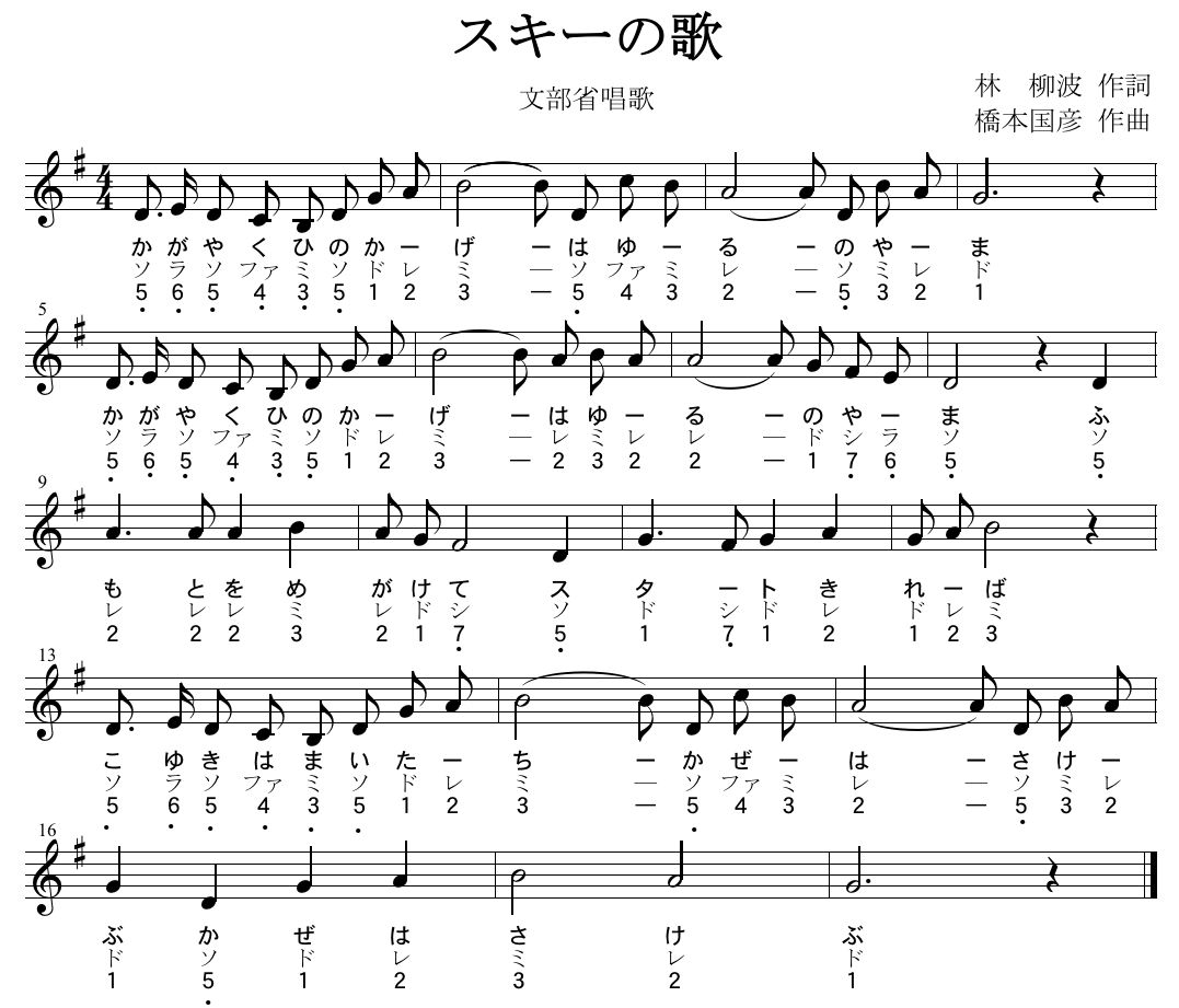 「スキーの歌」(文部省唱歌) 林柳波作詞/橋本国彦作曲