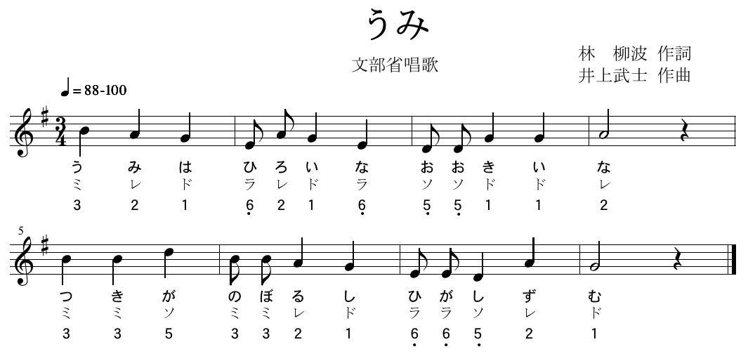 「うみ」(文部省唱歌) 林柳波作詞 井上武士作曲